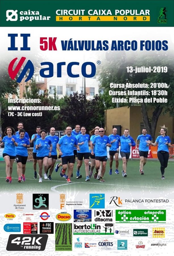 Fotos VALVULAS ARCO 5K FOIOS 2019, prueba celebrada el 13 de julio a las 20 h, con una distancia de 5.000 m, en la que participaron 719 corredores, organizado por el Ayuntamiento y Gent de Foios. Carrera perteneciente al Circuit Caixa Popular de l’Horta Nord. El vencedor masculino fue Jorge Peris Venancio del The Kenyan Urban Way y en mujeres Maria José Casinos de Redolat Team.