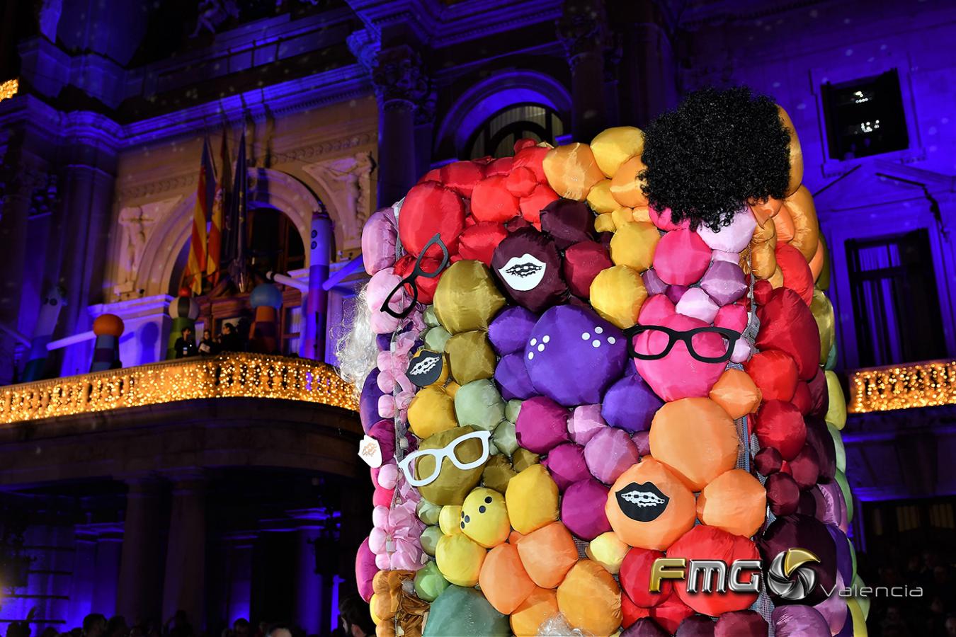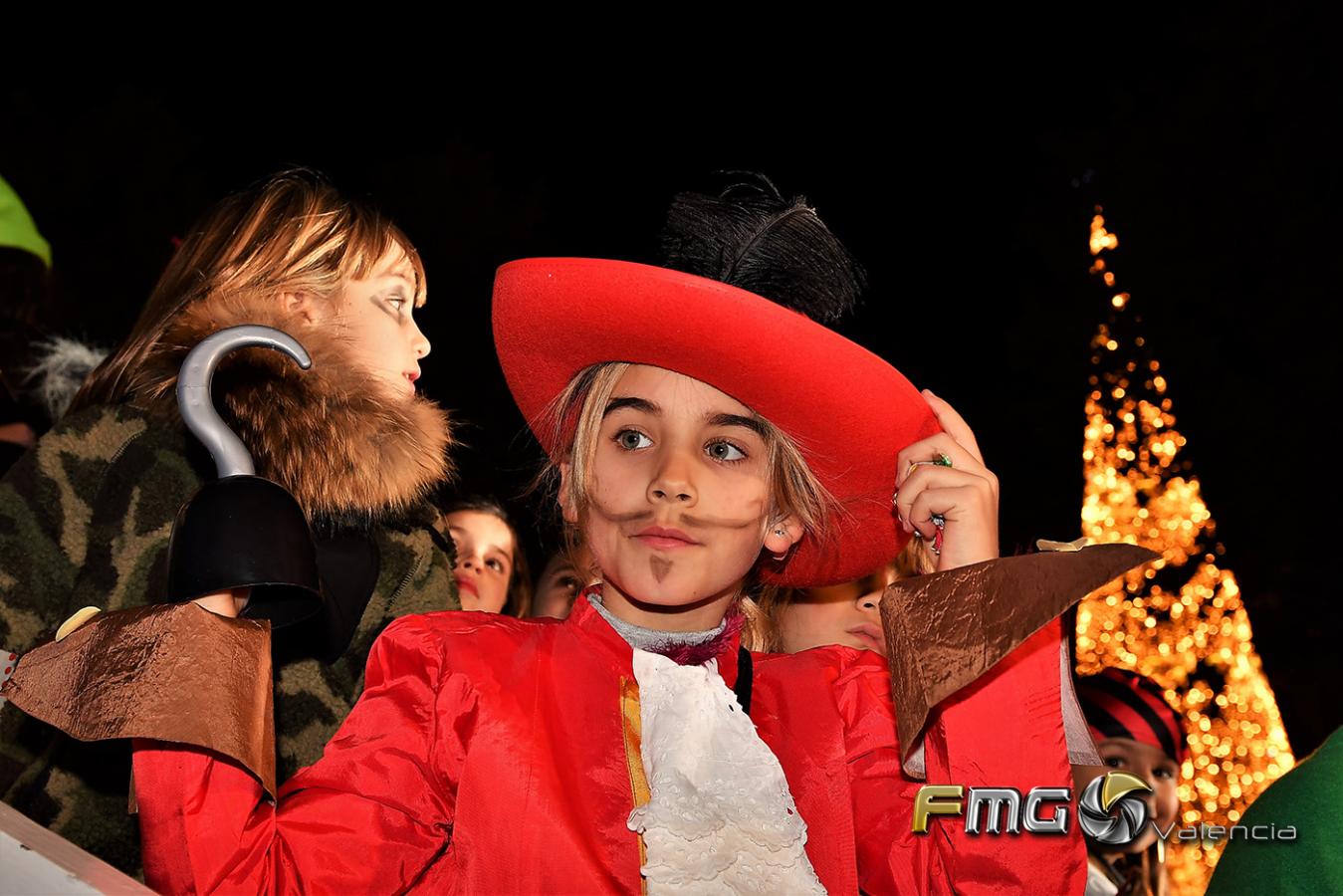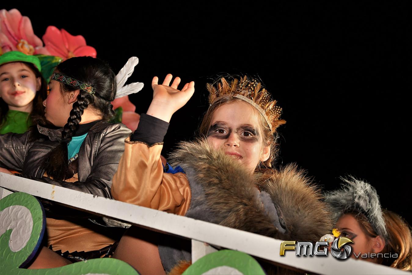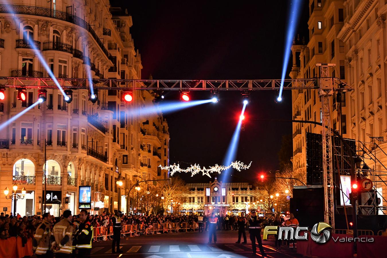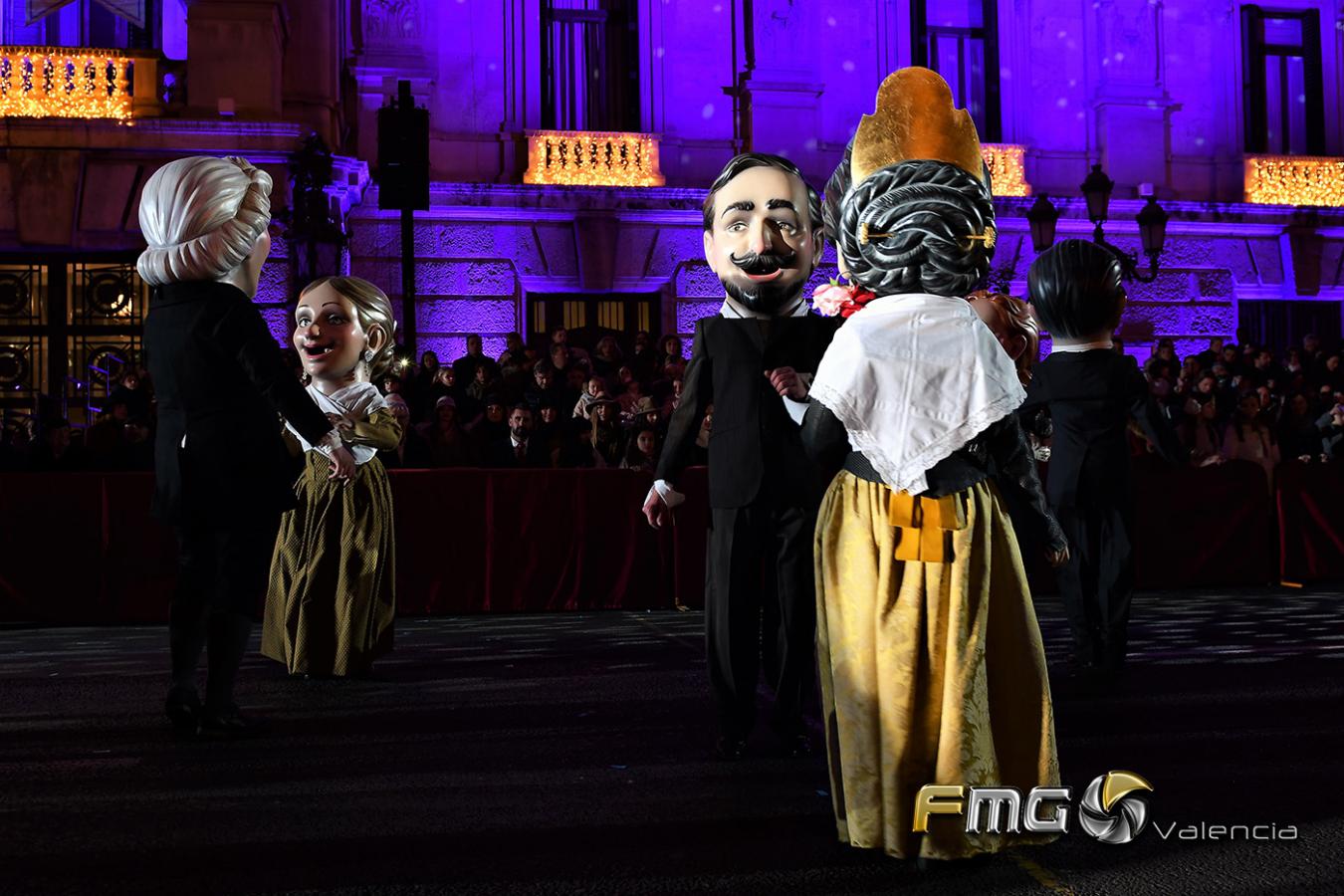 Fotos de la CABALGATA DE REYES VALENCIA 2019, sábado 5 de enero de 2019, a su llegada a la Plaza del Ayuntamiento. Con un gran desfile con grupos de animación, música y comparsas, se preparó una gran fiesta para dar la bienvenida a Melchor, Gaspar y Baltasar, con un final piromusical.
