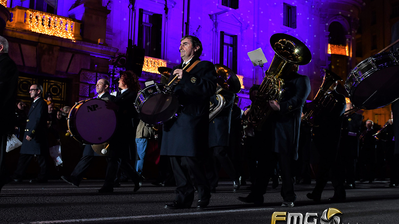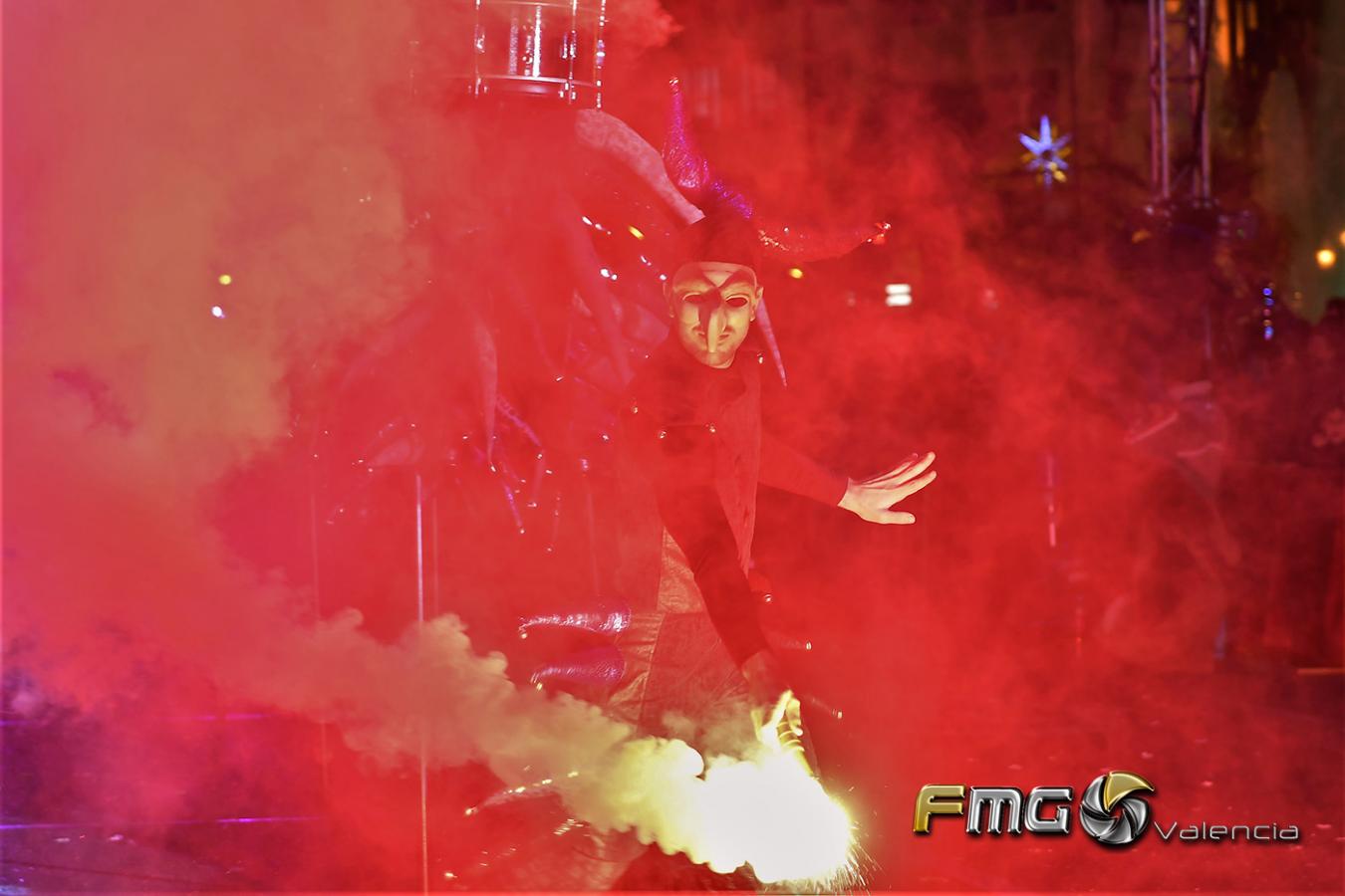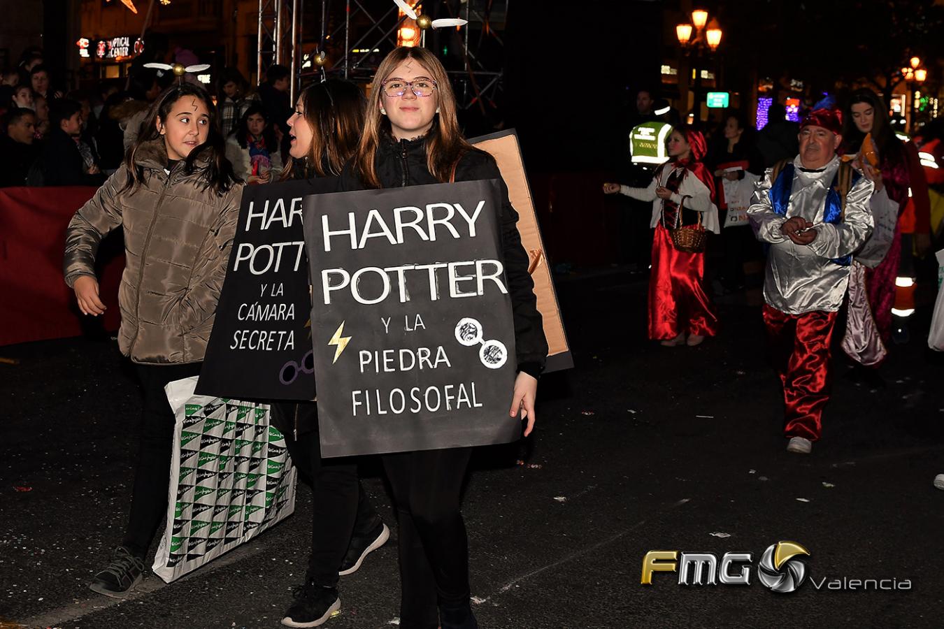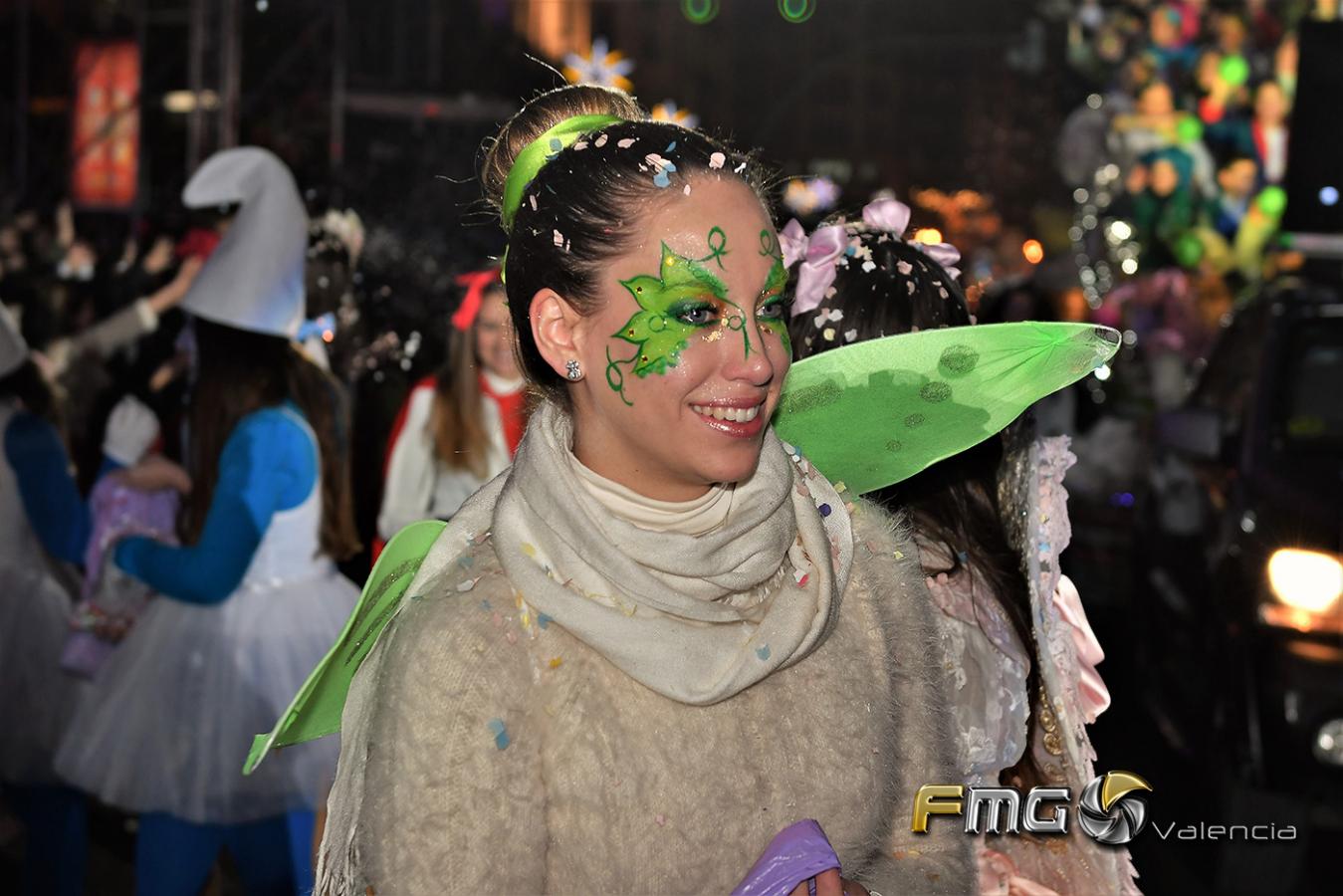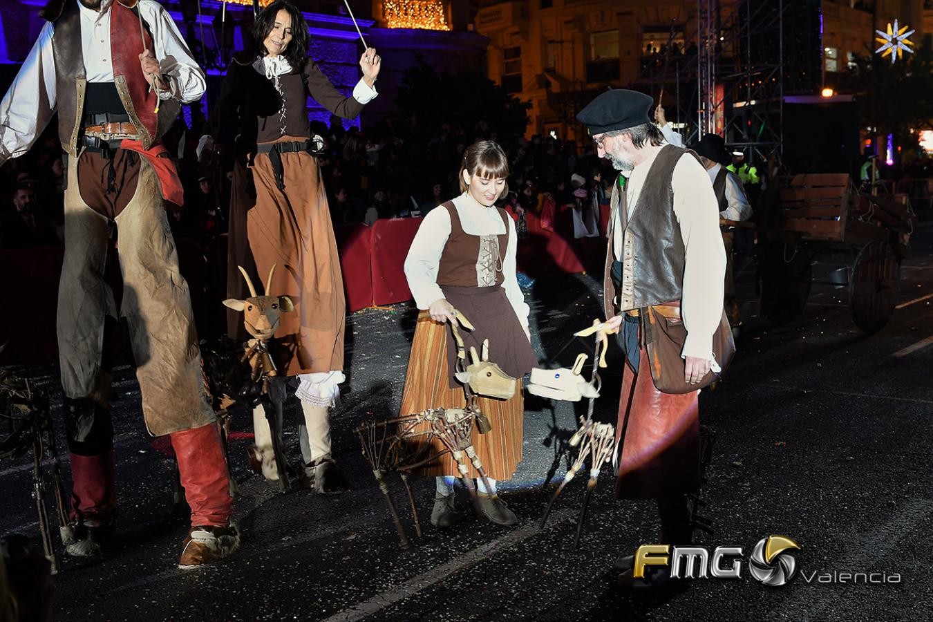 Fotos de la CABALGATA DE REYES VALENCIA 2019, sábado 5 de enero de 2019, a su llegada a la Plaza del Ayuntamiento. Con un gran desfile con grupos de animación, música y comparsas, se preparó una gran fiesta para dar la bienvenida a Melchor, Gaspar y Baltasar, con un final piromusical.