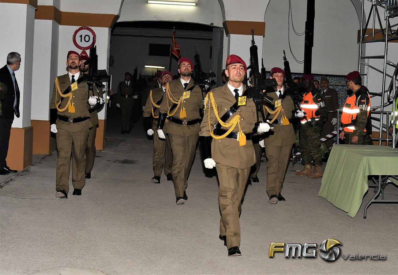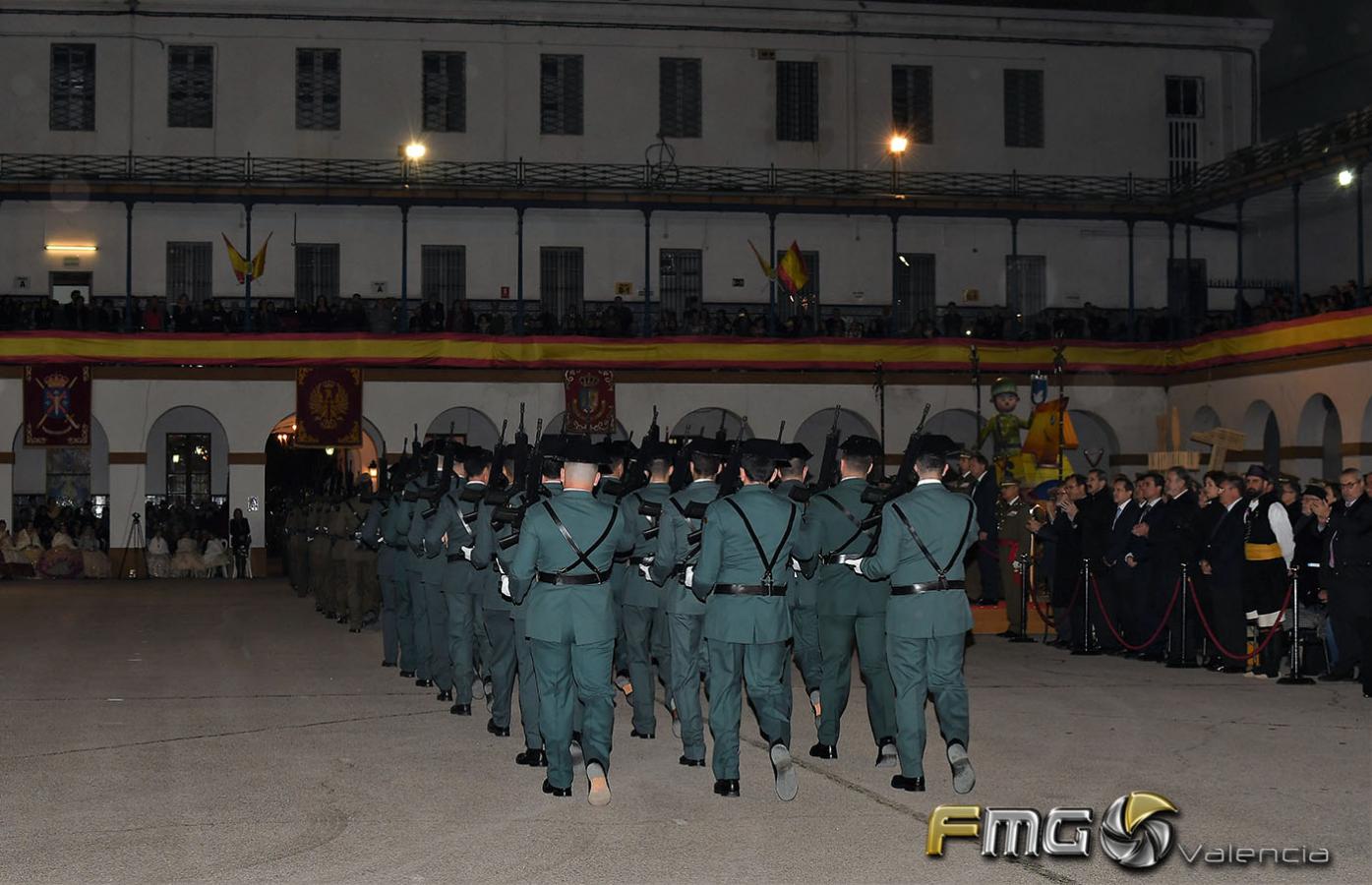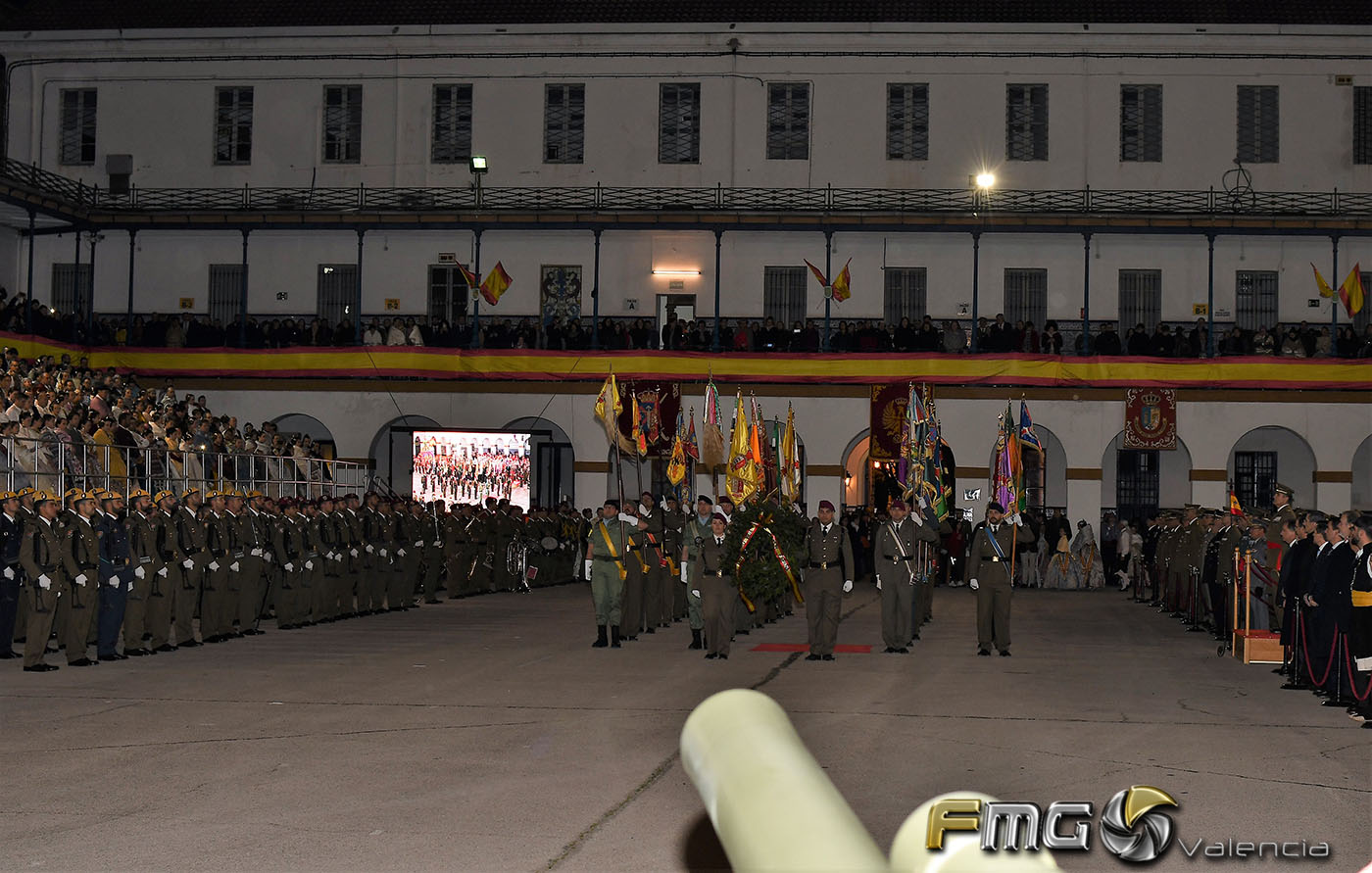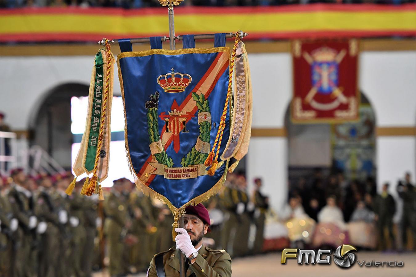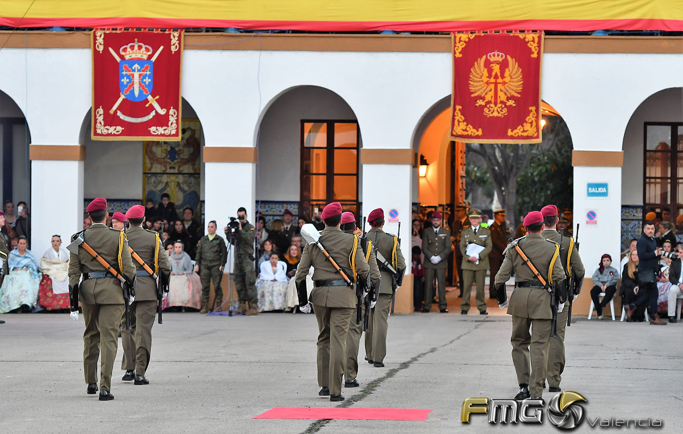La Fallera Mayor y Fallera Mayor Infantil con sus respectivas Cortes de Honor, fueron recibidas en el patio de armas del acuartelamiento, donde formaron una representación de hombres y mujeres de diferentes unidades del Ejército de Tierra ubicadas en Valencia, además de personal de la Unidad Militar de Emergencias, 6ª Zona de la Guardia Civil, Comandancia de Marina y Ejército del Aire,