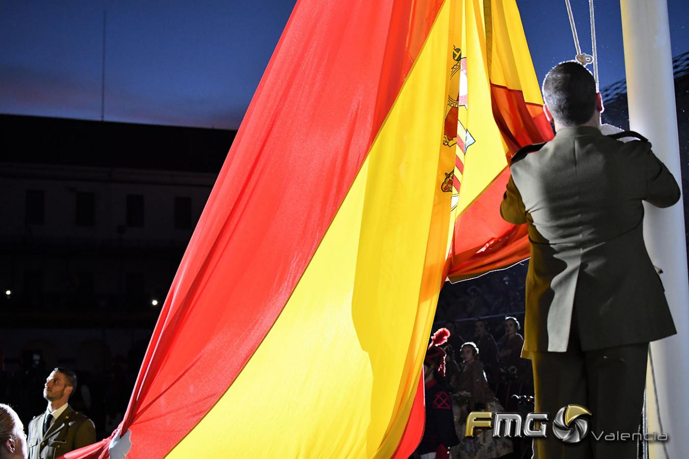 La Bandera Nacional que presidió el acto fue arriada y entregada al colegio “La Salle” de Paterna, como gesto de hermanamiento entre las Fuerzas Armadas y la sociedad valenciana. Posteriormente, se realizó un castillo de fuegos, seguido de la “cremà” de la falla.