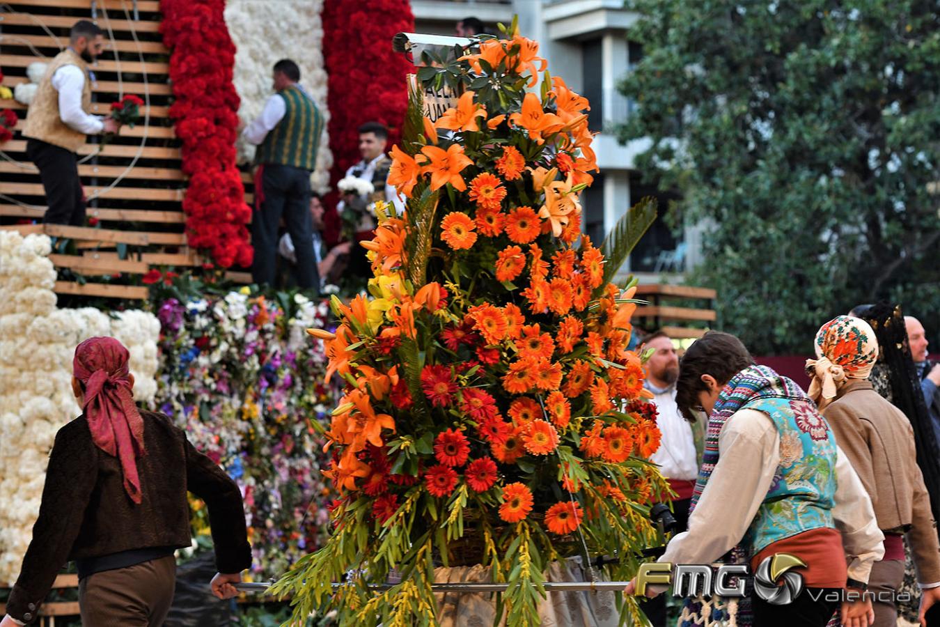 Fotos de la OFRENDA FALLAS DE VALENCIA 2018 del día 18 de marzo, este es el acto más emotivo para todos los falleros, todas las comisiones rindieron homenaje a la Virgen de los Desamparados con la ofrenda de flores que sirvieron para vestir el manto de la Virgen y las 181 canastillas entregadas por las comisiones falleras y depositadas en la Plaza de la Virgen. Más de cien mil falleros tomaron parte en el acto, donde se pudo sentir la gran devoción a la Virgen, con momentos cargados de emotividad y sentimiento.